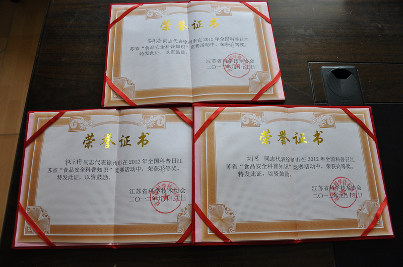 徐州市科協(xié)榮獲2012年全國(guó)科普日江蘇省“食品安全科普知識(shí)”競(jìng)賽全省唯一一個(gè)特等獎(jiǎng)